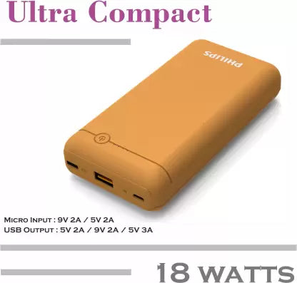 - PHILIPS 20000 mAh Power Bank (18 W, Fast Charging) (Brown, Lithium Polymer) PHILIPS 20000 mAh Power Bank (18 W, Fast Charging) (Brown, Lithium Polymer)